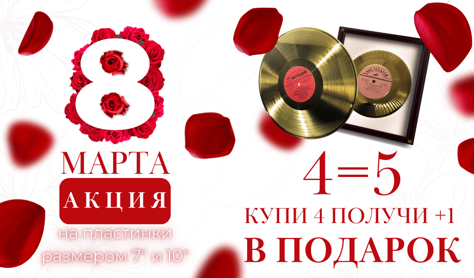 С 24.02.25 по 03.03.25 приобретая 4 пластинки (7" и 10"), получаете +1 пластинку В ПОДАРОК!