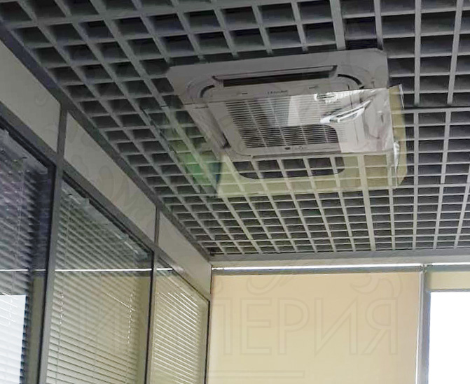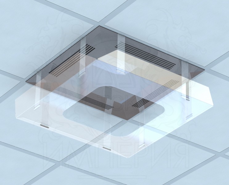 Экран для кассетного (потолочного) кондиционера снижает риск возникновения простудных заболеваний, благодаря равномерному распределению потоков холодного воздуха. Время установки не более 5 минут, необходимо только зафиксировать пластиковые крючки. Для подбора экрана необходимо замерить максимальный габарит декоративной панели от края до края.