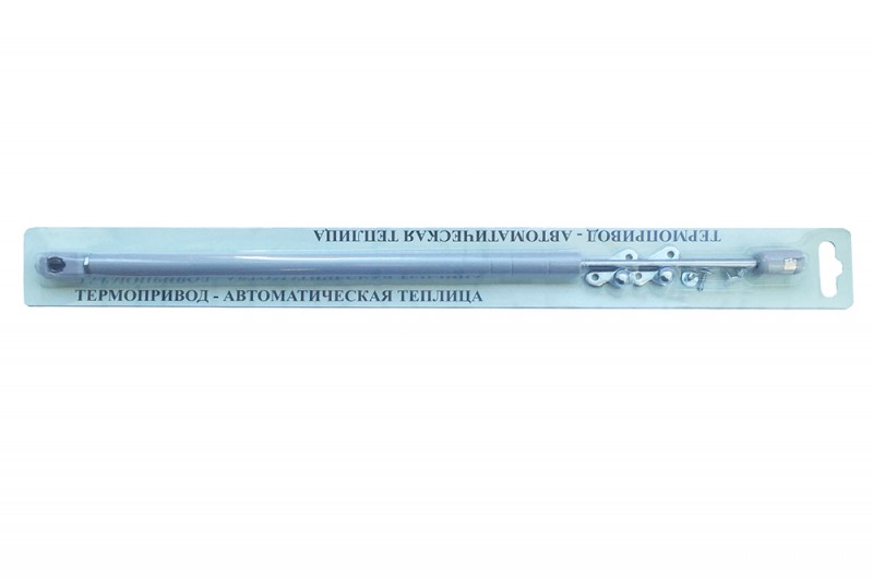 Принцип работы основан на нагревании от солнца рабочей жидкости в термоцилиндре. Жидкость выталкивает поршень. Поршень открывает форточку вашей теплицы.