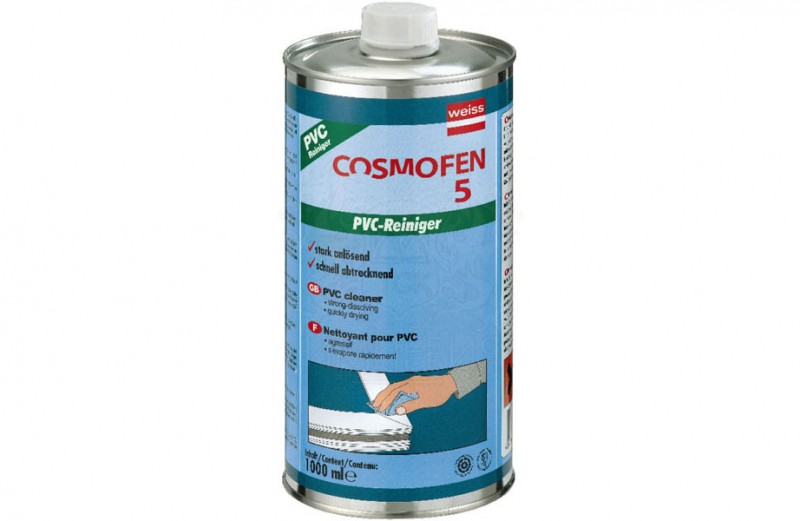 COSMOFEN 5 применяется в качестве растворяющего чистящего средства для вспененного и жесткого ПВХ, а также грубых загрязнений. Также применяется как полирующее и разглаживающее средство для ПВХ. Сильно растворяет и разглаживает поверхности из ПВХ.
