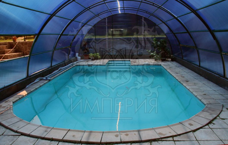 Навес над бассейном - прочная металлоконструкция из профильных труб и покрытие