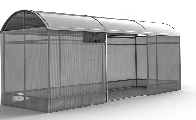 В соответсвии с Федеральным законом от 23.02.2013 N 15-ФЗ (ред. от 30.12.2020) "Об охране здоровья граждан от воздействия окружающего табачного дыма, последствий потребления табака или потребления никотинсодержащей продукции" — существует необходимость организации специальных мест отведённых под курение. Остановочный павильон выполнен из сотового поликарбоната, имеет высокую стойкость к внешним воздействиям, не боится влаги и солнца.