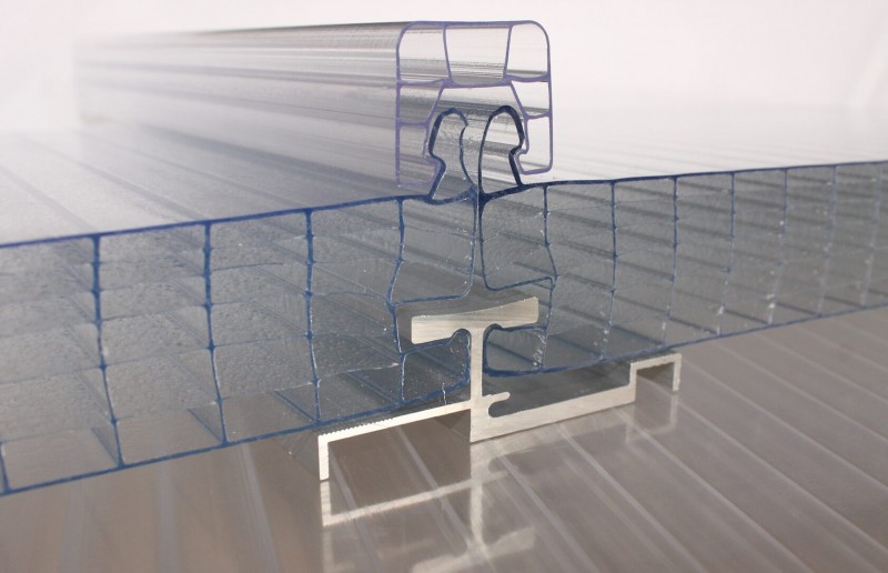 Данная система состоит из листов структурированного (сотового) поликарбоната с интегрированным замком (Толщина листов в панели от 8мм до 20мм), специализированной алюминиевой системы, заглушек, фастнеров, стопперов и компенсаторов.