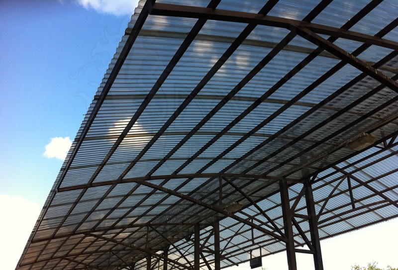 Профилированные поликарбонатные листы применяются во всем мире как материал для кровельных, обшивочных и облицовочных работ (для покрытия небольших навесов, арочных конструкций, беседок, козырьков, обшивки стен и т.д.). Это происходит благодаря выдающейся стойкости к внешним воздействиям: граду, ультрафиолетовому излучению, неблагоприятным погодным условиям.