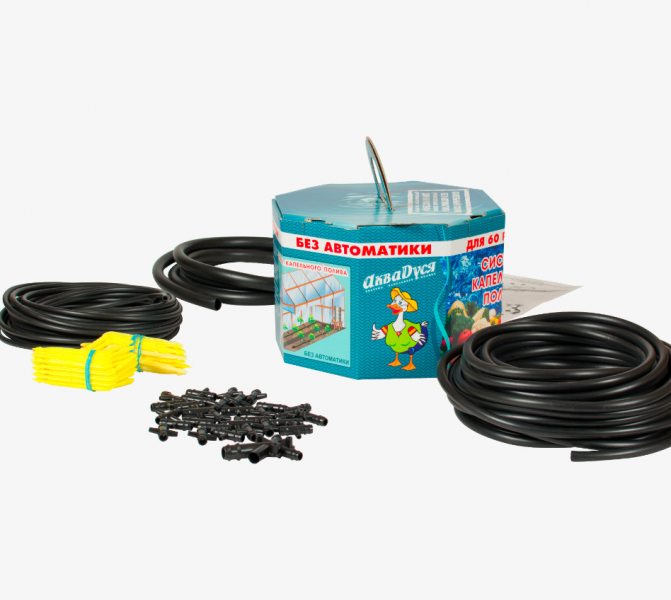 Капельный полив АкваДуся +60 – экономное решение проблемы своевременного ухода за огородом или клумбой. Бюджетная цена системы обеспечена отсутствием автоматики – все манипуляции производятся вручную. Купить систему капельного полива АкваДуся +60 – отличное решение для тех садоводов, которые большую часть времени проводят на своем участке. Единственные действия, которые требуется совершать владельцу после приобретения и установки шланга с капельницами – вовремя открывать кран и через 40-60 минут перекрывать поставку воды.