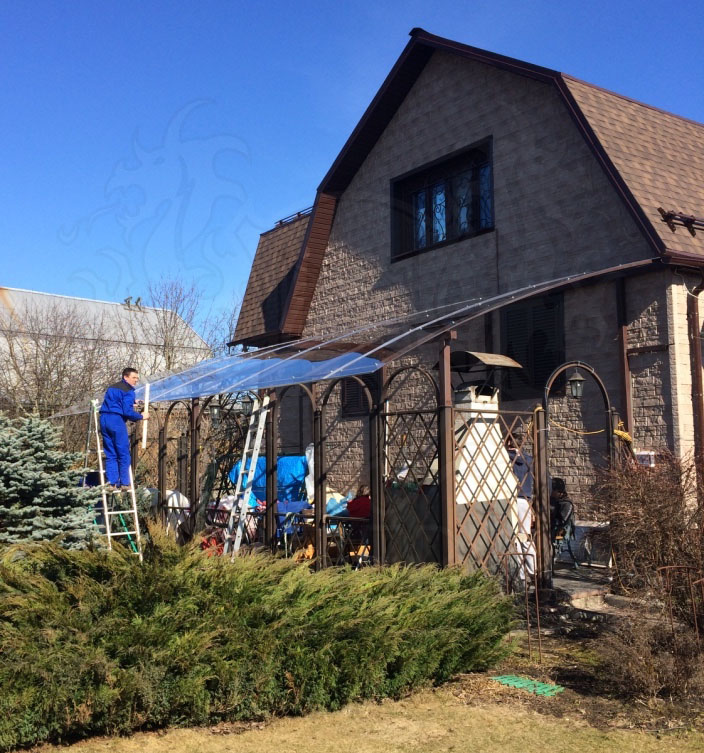 Навес из поликарбоната над террасой
