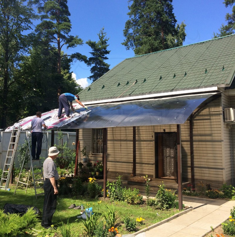 Торгово-Строительная Компания Империя осуществила расчет, комплектацию, поставку сотового поликарбоната IRROX для навеса в террасу жилого дома в КП "Ильинское".