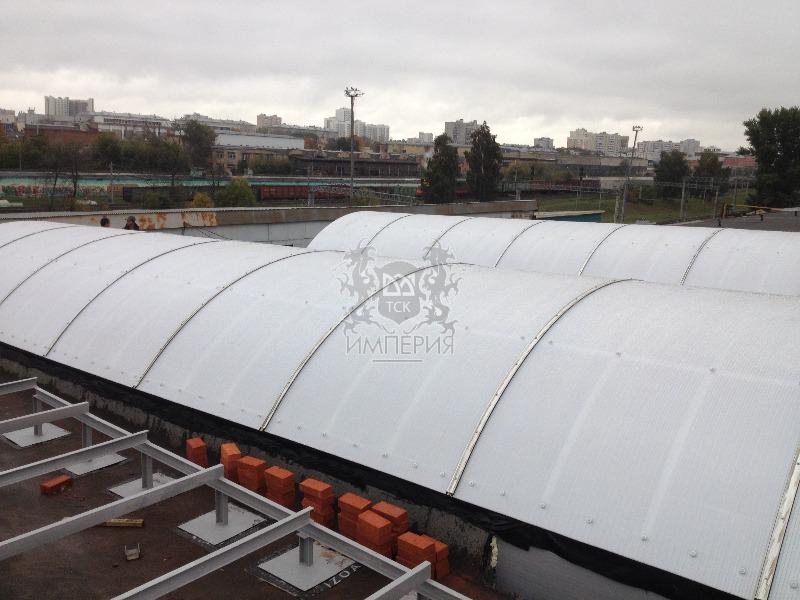 Компания ООО "ТСК Империя" осуществила расчет, комплектацию и поставку сотового поликарбоната для остекления зенитных фонарей в г. Москве. Кровля выполнена из бесцветного сотового поликарбоната Lexan 2UV (Австрия), толщиной 25мм, восьмикамерной структуры - 9Х. Площадь составляет более 600 кв.м.