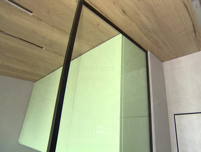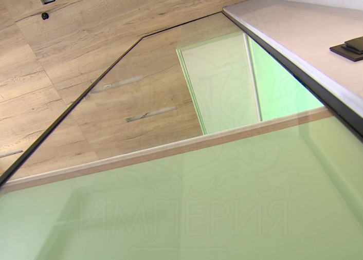 С помощью оргстекла отделили зону готовки от входа. В металлический профиль установили итальянское оргстекло толщиной 15 мм.