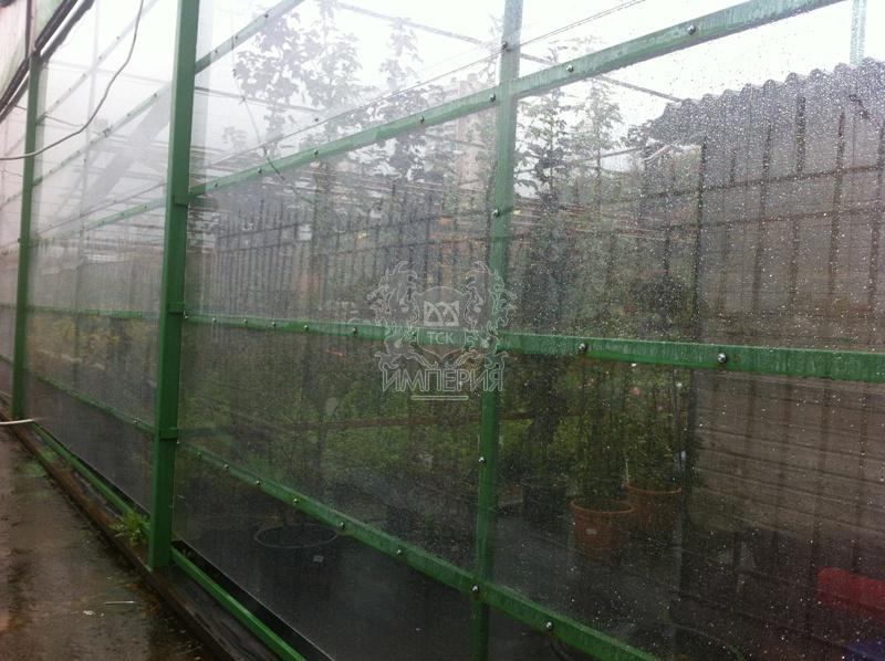Протяженность забора более 100 п.м., высота ~ 4 м. Использовался монолитный поликарбонат толщиной 6 мм бесцветный