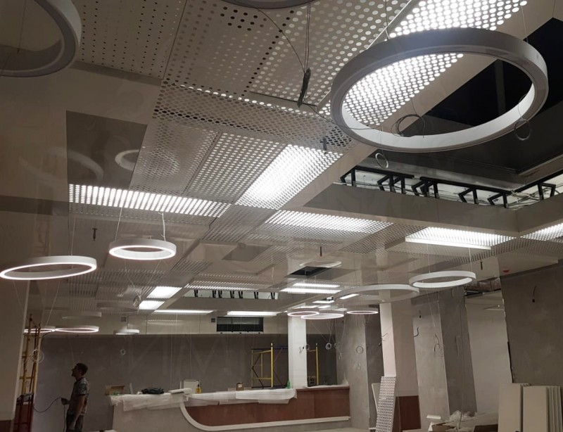 Компания "ТСК Империя" осуществила поставку светотехнического монолитного поликарбоната для оформления потолочного освещения. Расположен между световым освещением и футуристическими образами на потолке.