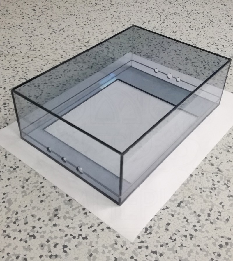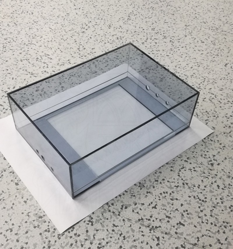 Был использован: антистатический поликарбонат, толщина: 6 мм, цвет: бесцветный, клей Weldyx.