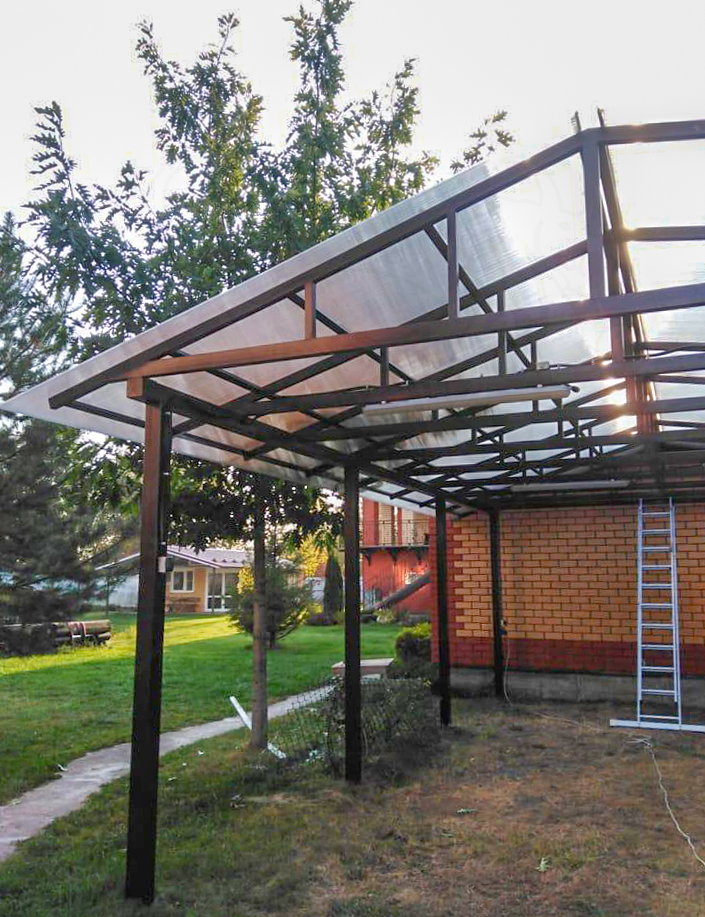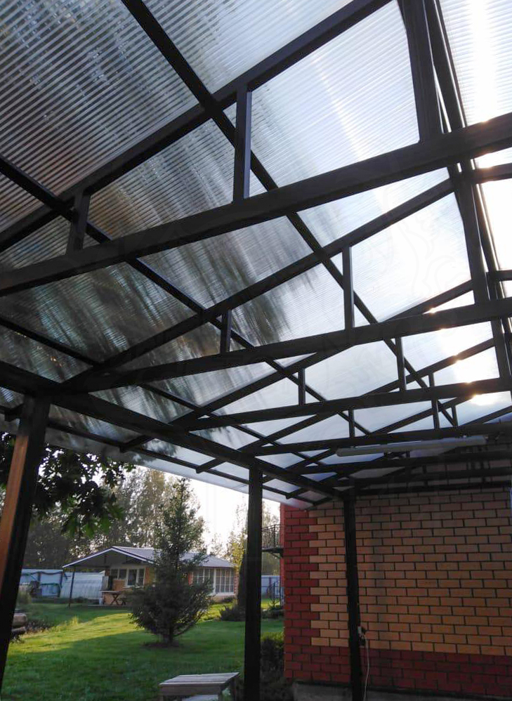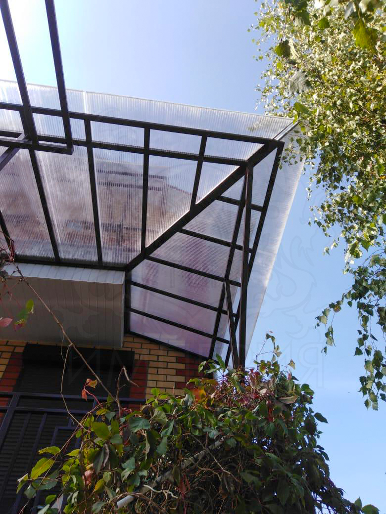 Торгово-Строительная Компания Империя осуществила поставку сотового поликарбоната Lexan 9Х с лаковой защитой для навеса для автомобиля и навеса для входной группы частного дома в Коломенском районе Московской области.