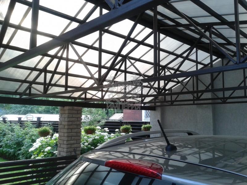 Компания "ТСК Империя" осуществила расчет, комплектацию, поставку и монтаж кровельных замковых панелей Sunpal на навес над автомобилем. Крыша выполнена из кровельной системы толщиной 10мм, цвет бронза. Объект выполнен 2013 году.
