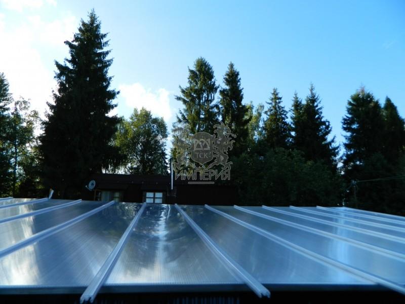 Компания "ТСК Империя" осуществила расчет, комплектацию и поставку кровельных замковых панелей Sunpal на навес над террсой. Крыша выполнена из бесцветной кровельной системы толщиной 10мм, фасады из замковых панелей Lexan Thermoclick, толщиной 40мм синего цвета Объект выполнен 2014 году.