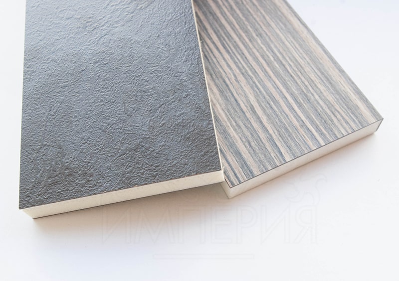 - Плита с наполнителем из жёсткого вспененного полиуретана и лакированными защитными слоями из алюминия;