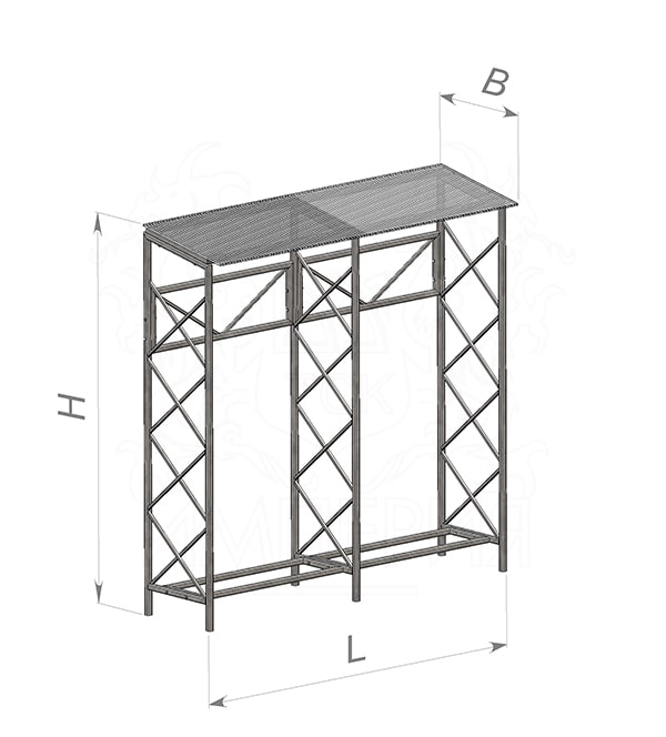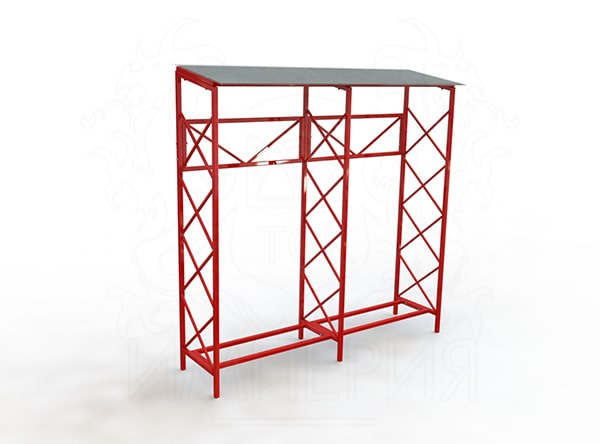 Стационарный дровник "Мангальный". Позволяет хранить довольно большое количество дров обеспечивая их вентиляцию и защиту от осадков. Дровник может располагаться как пристенное или отдельностоящее сооружение.