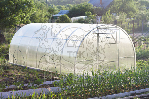 Низкая стоимость, удобство транспортировки (малые габариты при перевозке), хорошо отработанная технология производства. Теплица имеет два дверных проёма в противоположных торцах и в каждом дверном проеме имеет дверь и форточку. Покрытие на зиму нужно снимать. Каркас теплицы изготовлен из оцинкованного профилированного железа толщиной 0,8мм.