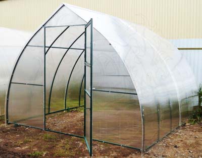Новатор-Капелька с шагом дуги через 66 см. Каплевидная форма крыши и  шаг дуг делает  теплицу более надежной: крыша  не  дает задерживаться осадкам, а шаг дуг и покрытие поликарбонат делают теплицу более прочной.