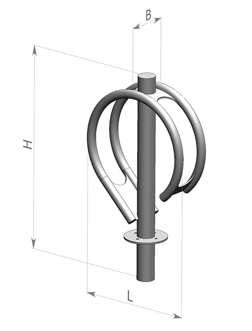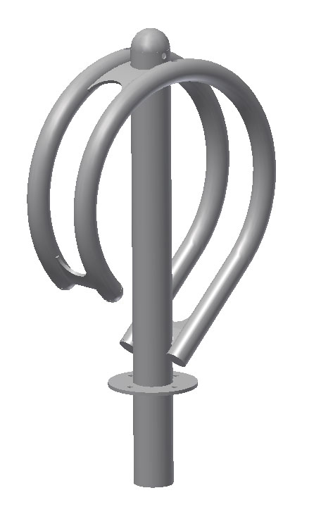 Гнутая дуга С-образной формы высотой 845 мм, кольцеобразная часть диаметром 600 мм. Выполнена из трубы круглого сечения диаметром 51 мм и толщиной стенки 2,5 мм. В комплект поставки входит крепежная пластина длиной 300 мм и шириной 250 мм, дополнительно через отверстия пластины конструкция закрепляется анкерами (в комплект поставки не входят). Конструкция обработана методом гальванического цинкования.