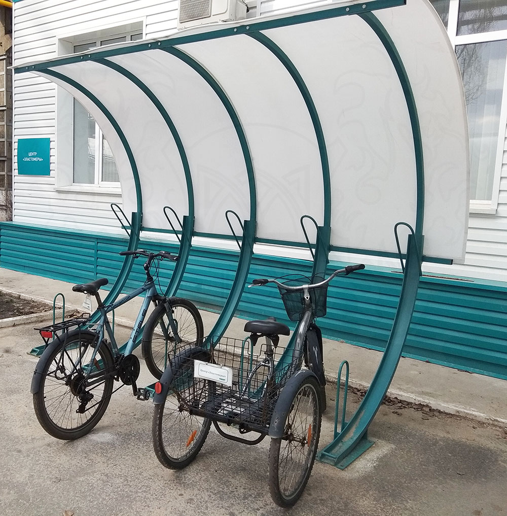 Качественная, прочная и устойчивая велопарковка на 3-5 мест, легко крепится к полу. Подходит для всех видов велосипедов обеспечивая устойчивую и безопасную фиксацию как переднего колеса так и заднего, при этом закрытая велопарковка не даст промокнуть велосипеду. Практичная парковка прекрасно подойдет для общественных мест. Парковка защищена от коррозии и царапин - исполнена из гальванически оцинкованной стали либо порошковая покраска. Эргономичная система постановки велосипедов. Выпускается в различных размерах. Велопарковка "45 градусов с навесом" на 3 и 5 парковочных мест.